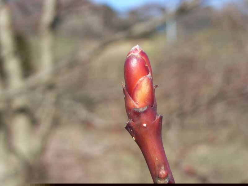 冬芽は濃紅紫色の楕円形で大きい。(2010/2/20)