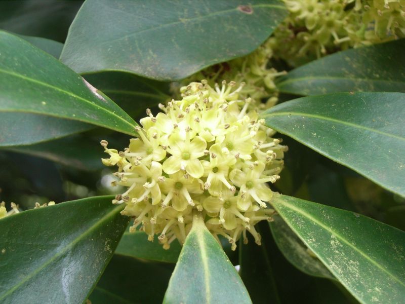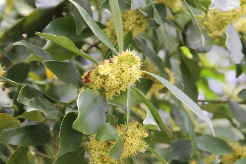 直径8ミリぐらいの小さい黄緑色の花をたくさん束生させる。