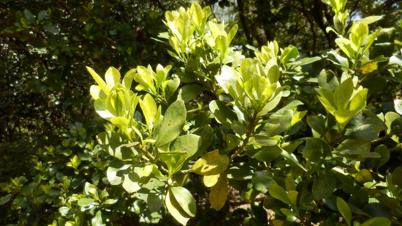 葉は長さ4〜8センチの楕円形で互生し、有柄で無毛、