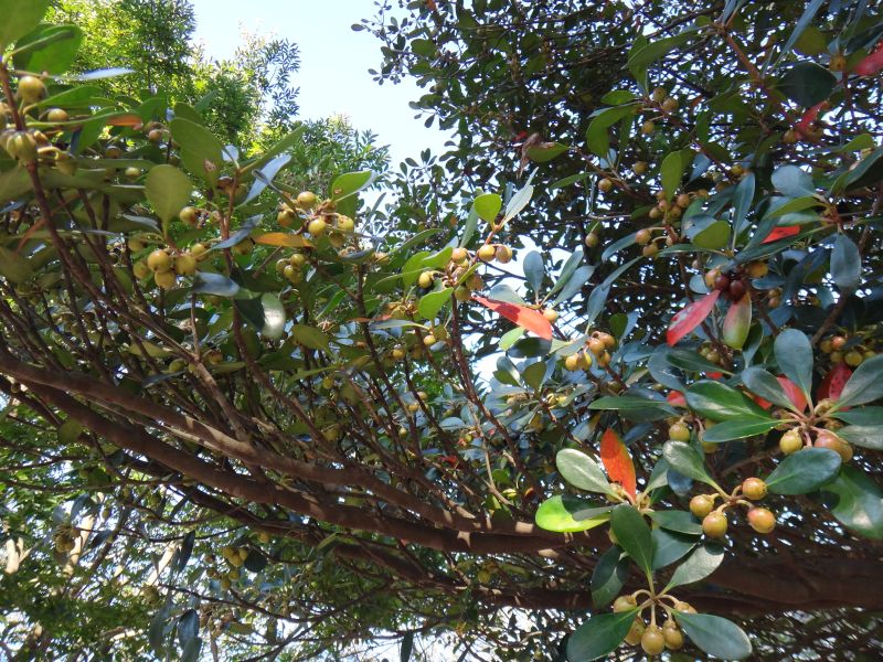球形の刮ハが赤く熟す。