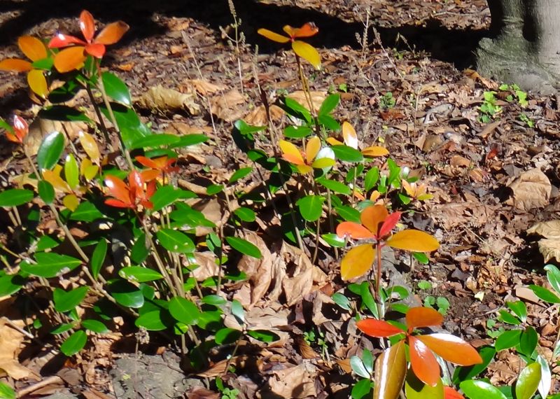 根から出たひこばえ。若葉は赤みを帯び、光沢がある。(2016/11/3)