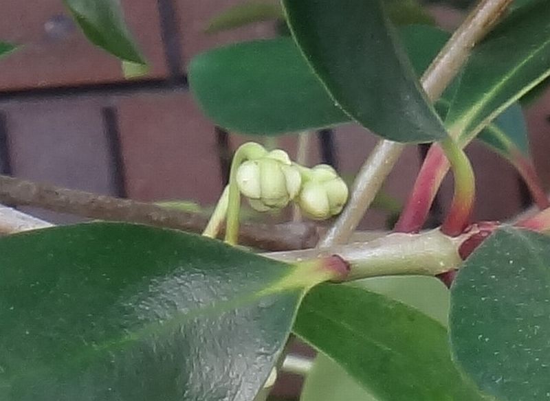 夏に直径1.5センチぐらいの5弁花を葉腋に数個下向きにつける。