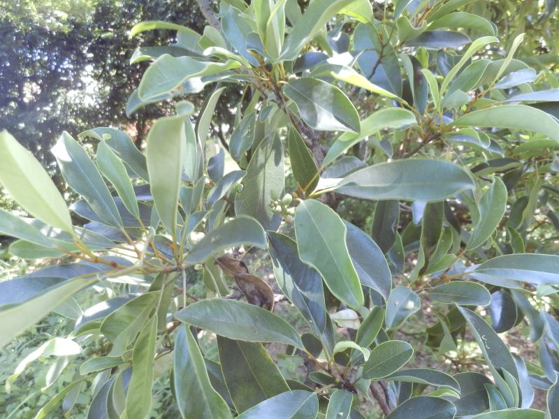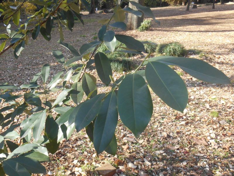 幹は直立し、葉は長楕円形で全縁、革質であり、