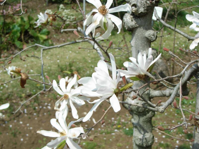 葉は倒卵形で葉の展開前に白い花が咲き、数日で散る