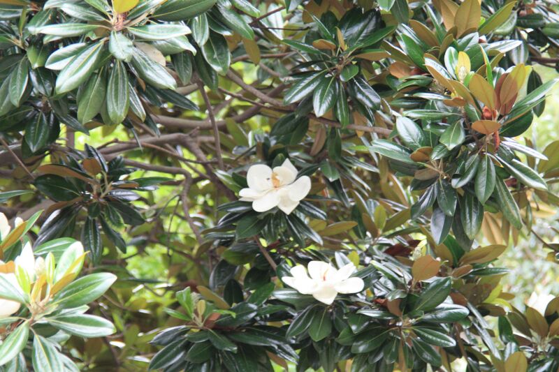 花は白色で15センチぐらいあり、芳香がある常緑高木