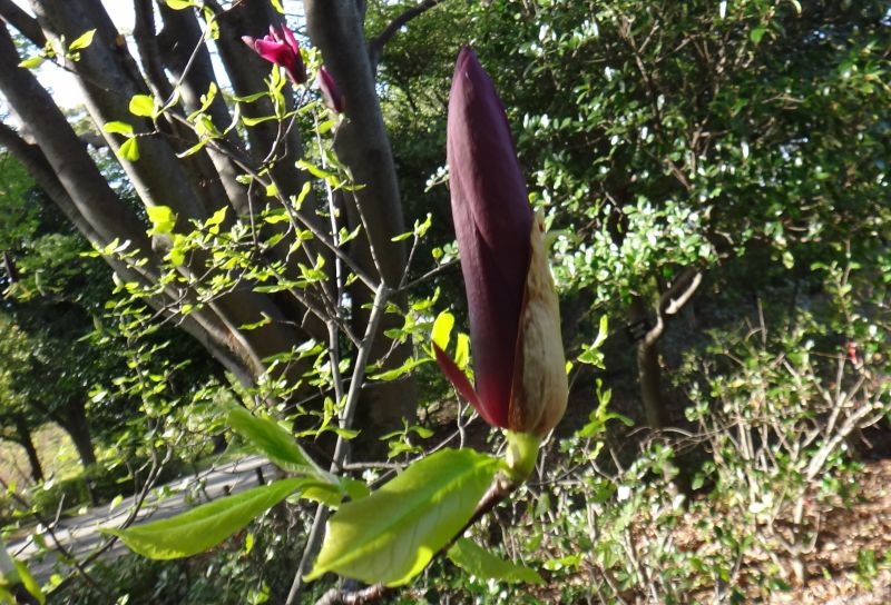蕾は毛のある鱗片に包まれ、陽の当たる南側の鱗片が早く伸びるので、