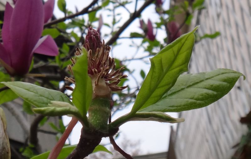 果実は袋果の集合果。雄しべは大部分落ちている。(2016/4/29)