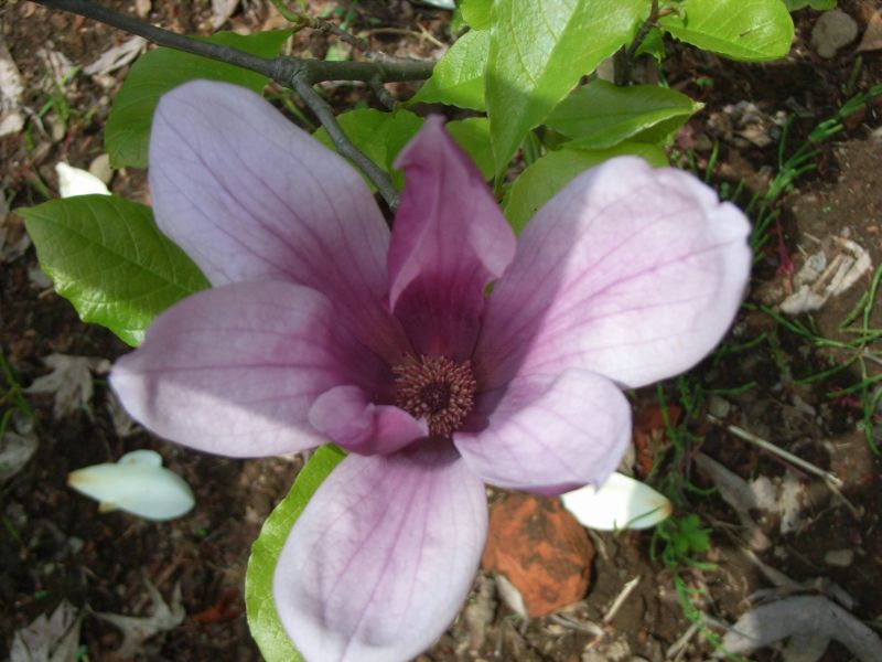 花が北に傾いて開く。花弁は6枚で長さ10センチぐらいあり、