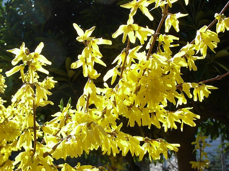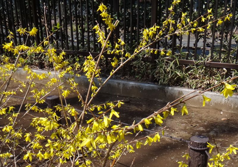 レンギョウより花も葉も大きく、枝が弓なりに横伸びする