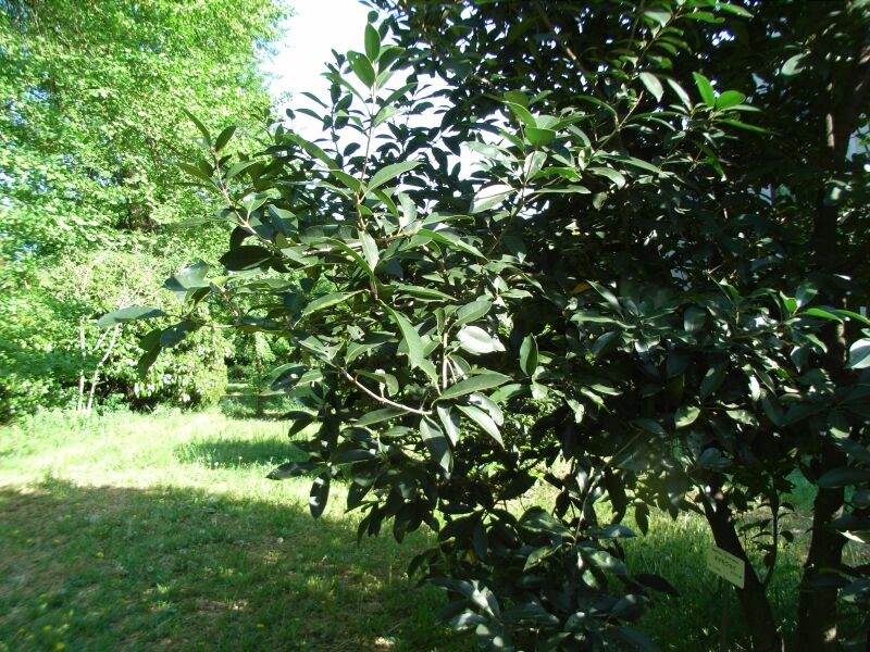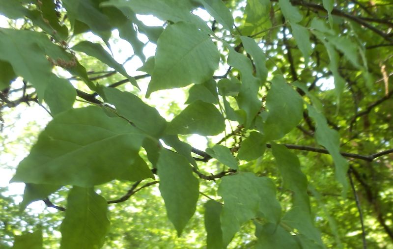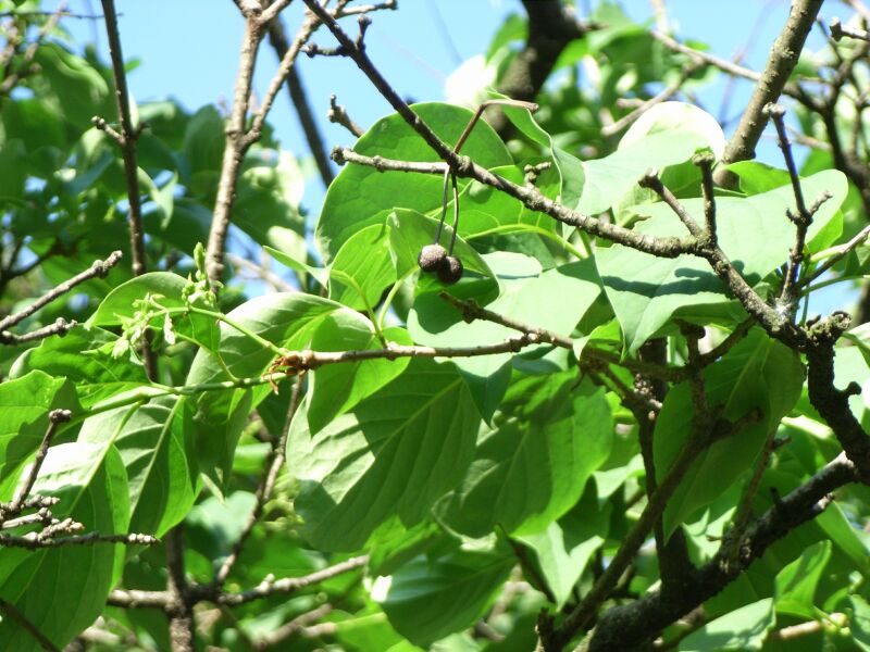 樹皮には楕円形の皮目があり、葉は先のとがった広卵形で、