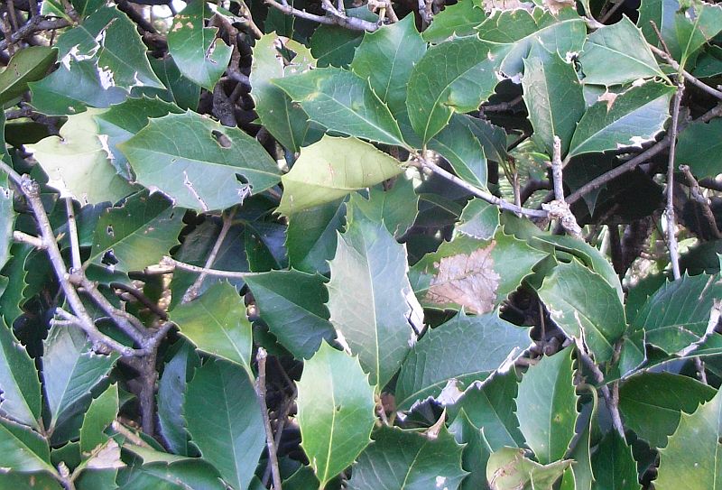 葉は楕円形でかたく、鋭い棘状の鋸歯があリ、