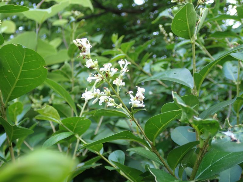 秋に葉腋に花柄のある小さな花を密生させ、芳香を放つ