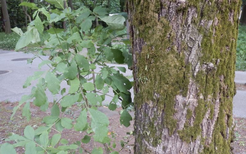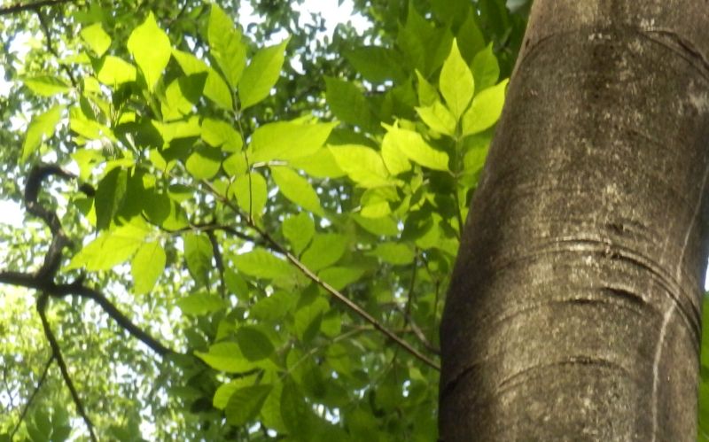 幹は灰褐色で縦に割れ目が入り、葉は長楕円形で長い葉柄を持ち、