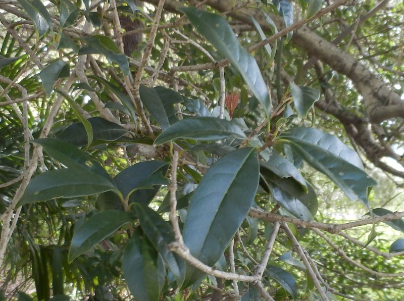 葉は全縁の広卵形で厚く、暗緑色でつやがあり、