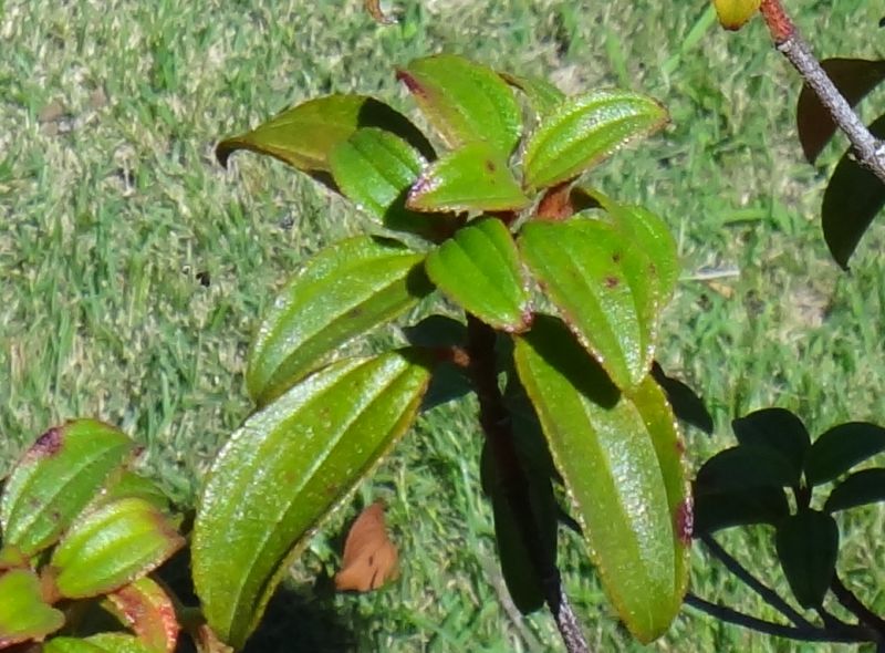葉は尖った厚手の楕円形で、光沢がある。(2017/9/21)