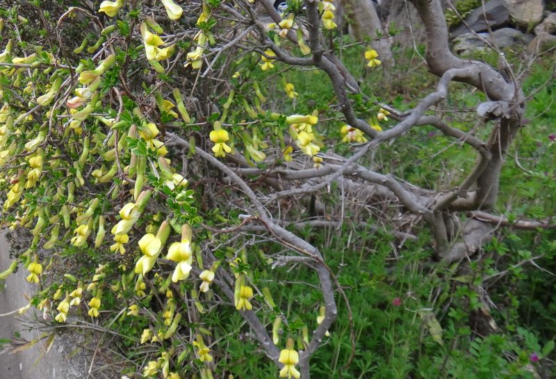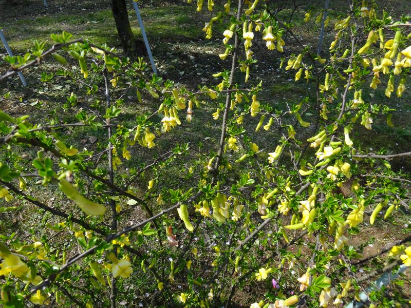 葉腋ごとに黄色い蝶形花が垂れ下がる。