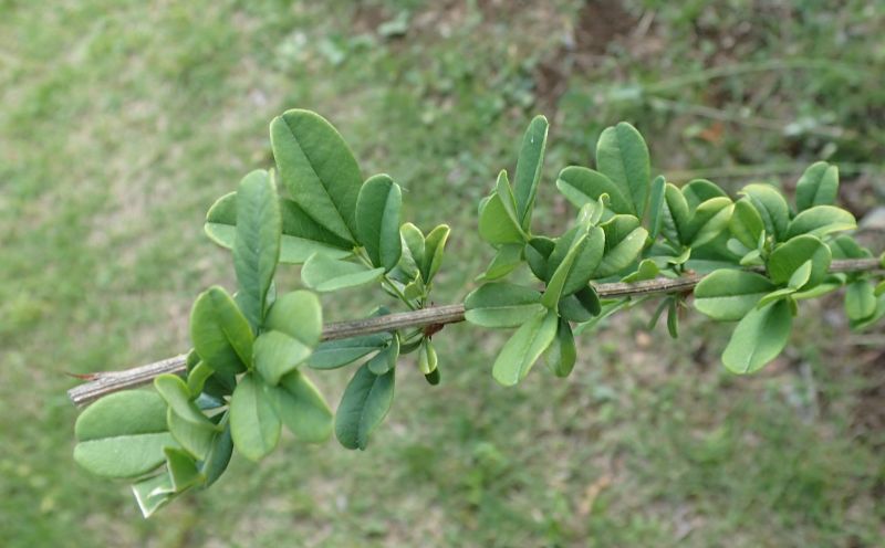 落葉後に木化するので、枝の節ごとに2本の棘が残る。