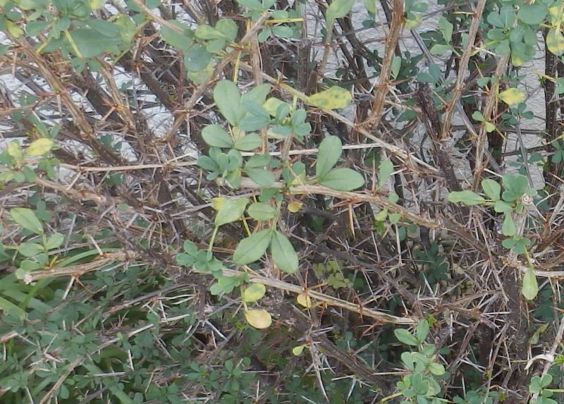 葉や托葉が棘となって残るので、古枝では、節に棘がいくつも残ることになる。(2021/10/3)
