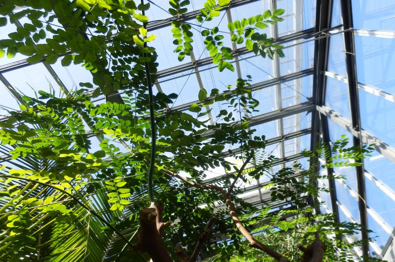2回羽状複葉が互生し、幹は淡褐色で平滑。