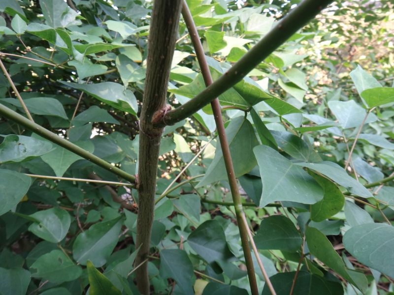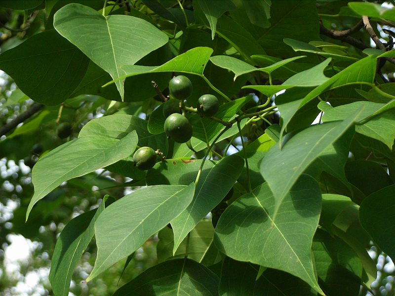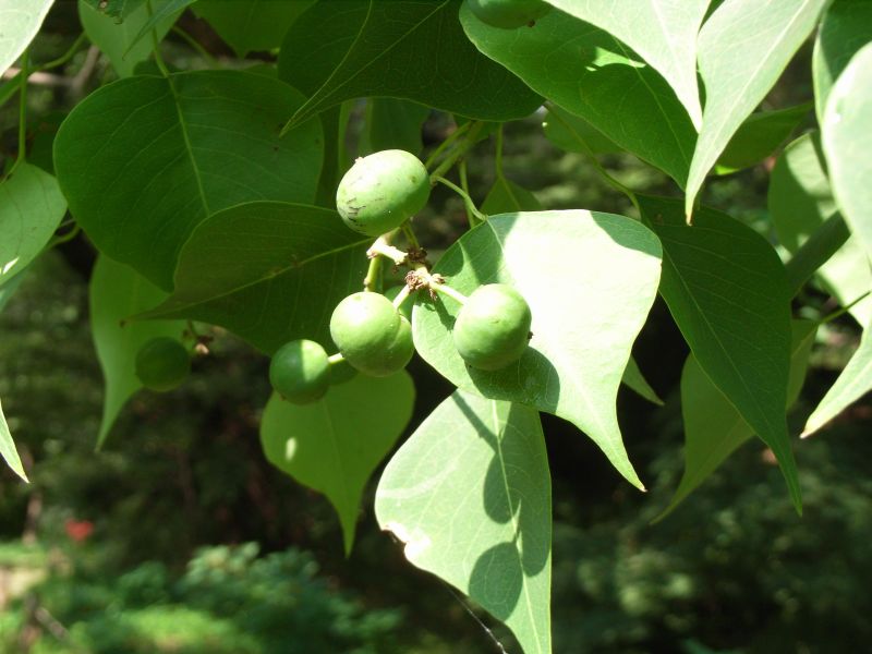 樹皮は灰褐色で縦の裂け目があり、若枝や葉を傷つけると白い乳液がでる。