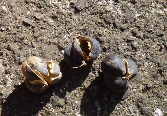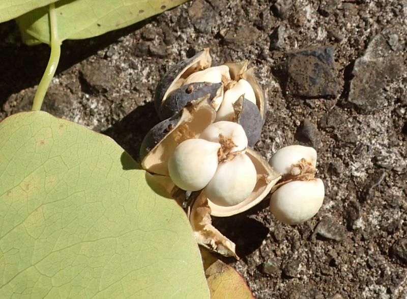よく熟した果実は黒くなり、稜に沿って3裂する。(2016/11/26)