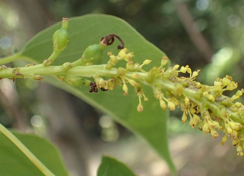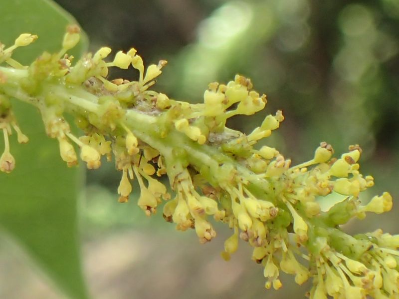 枝先にでる長さ6〜18センチの総状花序に、黄色の小さい花が多数つく。