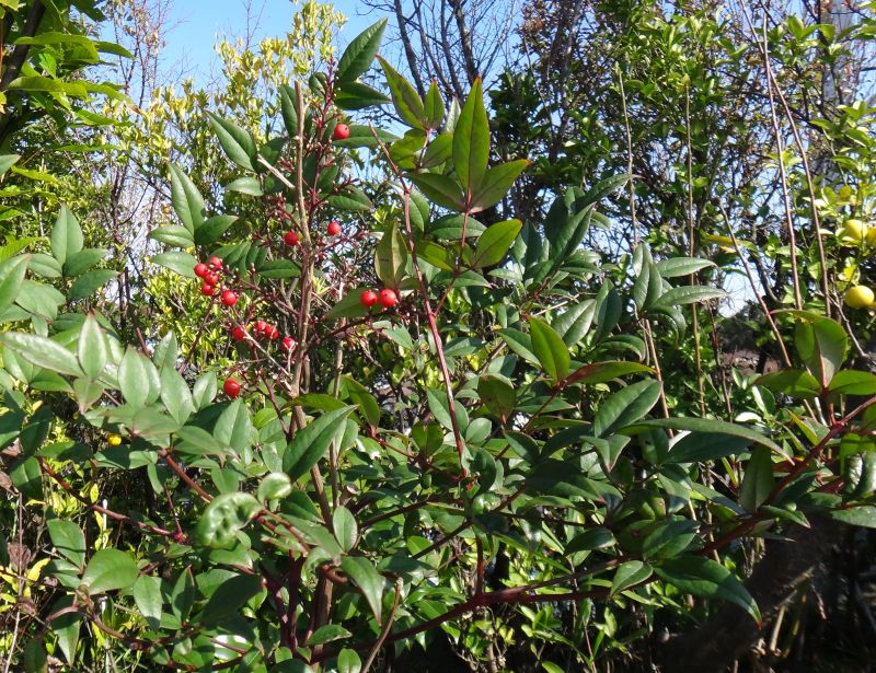 オカメナンテン(オタフクナンテン):よく色づく。(2015/12/18)