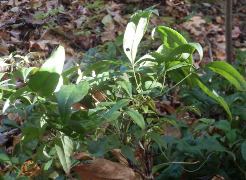小葉は全縁の披針形で、革質で光沢がある。葉裏は淡緑色。(2014/11/16)