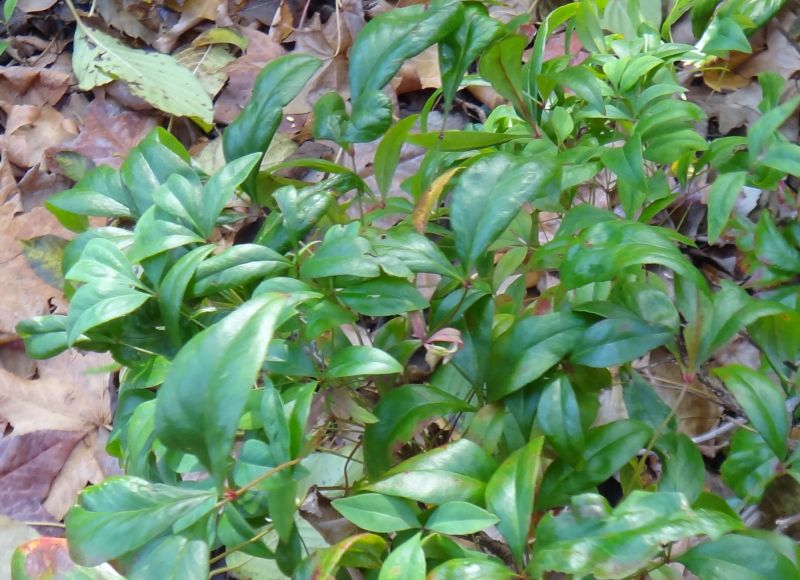 オカメナンテンは丈が低いが、よく分枝して茂る。葉裏は淡緑色。(2022/11/12)