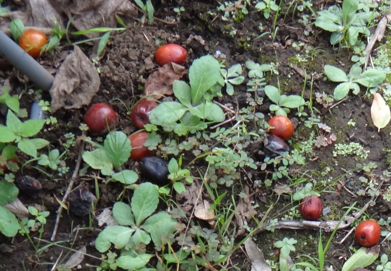 10月〜11月に暗赤色に熟し、食べられる。