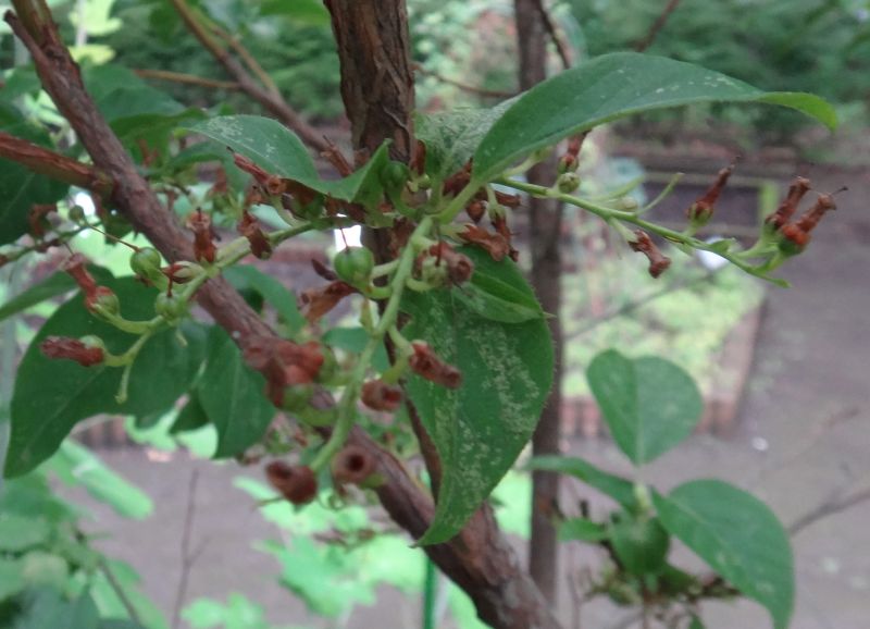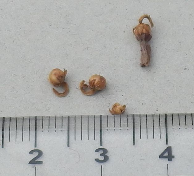 果実は淡褐色で丸い。中に紡錘形の種子が数個入っている。(2022/10/27)