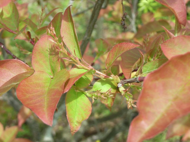 冬芽と冬芽をつけた枝も赤みを帯びることが多い。