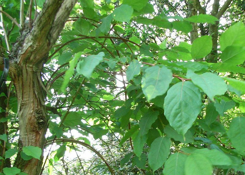 葉は長さ5〜10センチの広卵形で、まばらに伏毛があり、
