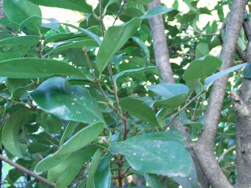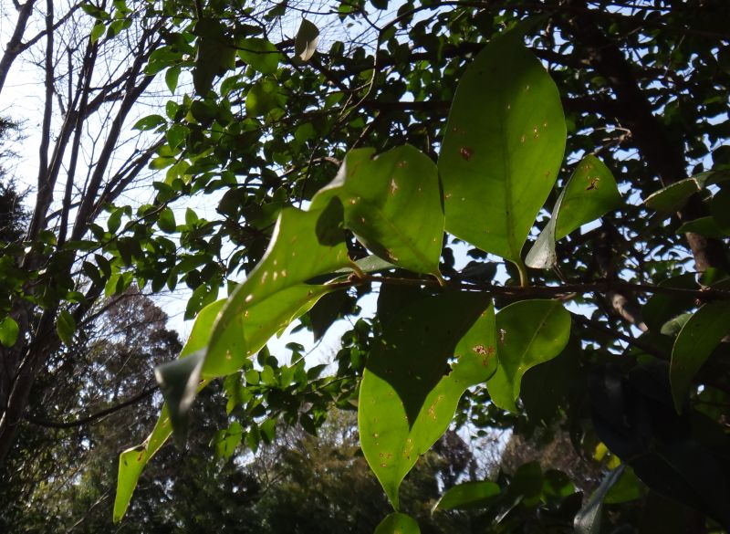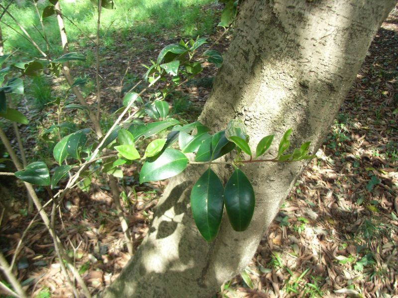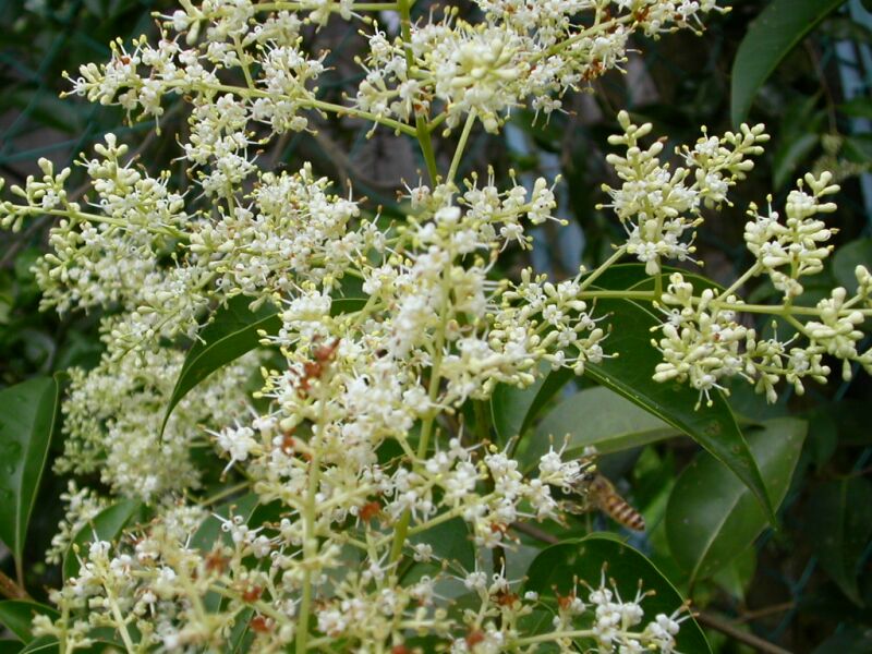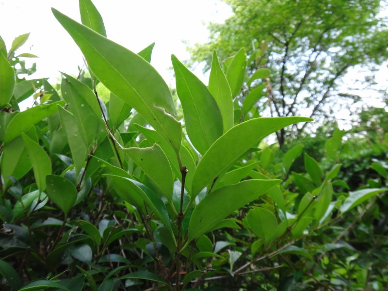 トウネズミモチ:葉脈が透けて見える。葉や花序、樹高が大きい。