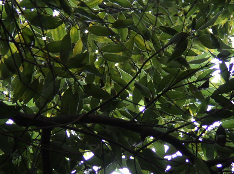 葉は密に茂って、樹下は暗い。