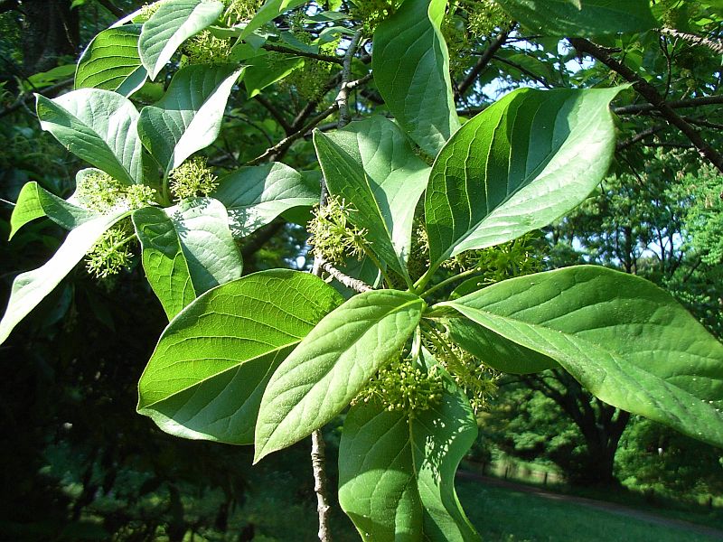 葉は先のとがった長さ15センチぐらいの大きな長楕円形で、互生する。