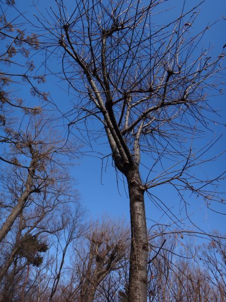 樹皮は灰黒色で縦にひび割れる。(2015/10/22)