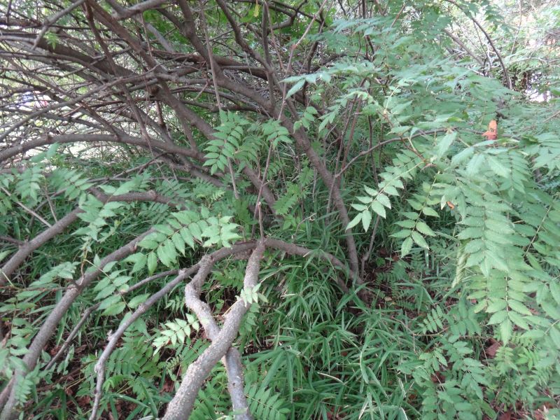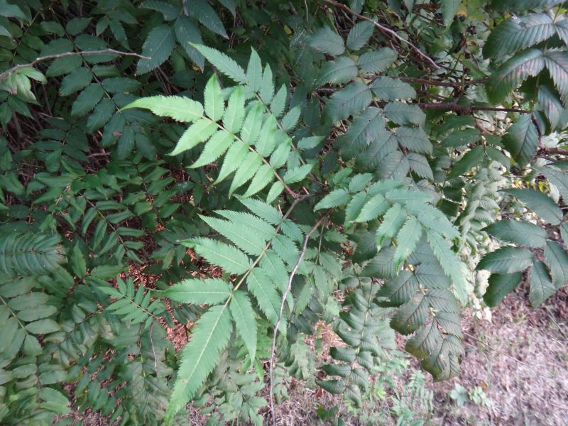 奇数羽状複葉の小葉は披針形で、細かい鋸歯がある。(2015/10/12)