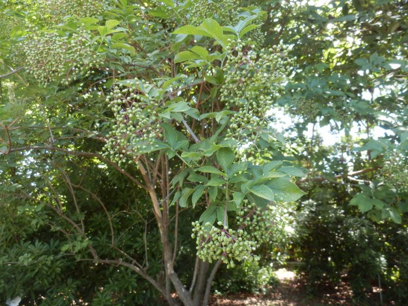 アメリカニワトコ。果実が大きくなってきた。