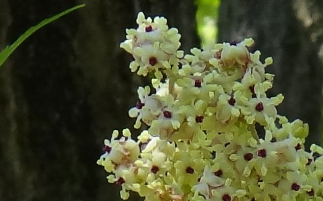 黄白色または淡紫色の直径3〜5ミリの花を多数つける。