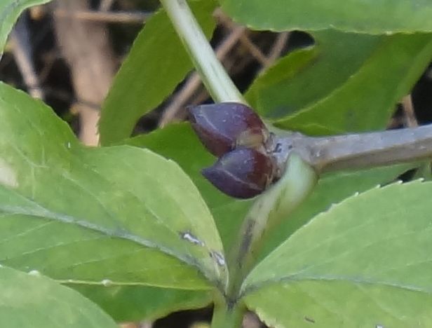 蕾は大きい。花序の下には羽状複葉の芽が用意されている。(2017/3/10)