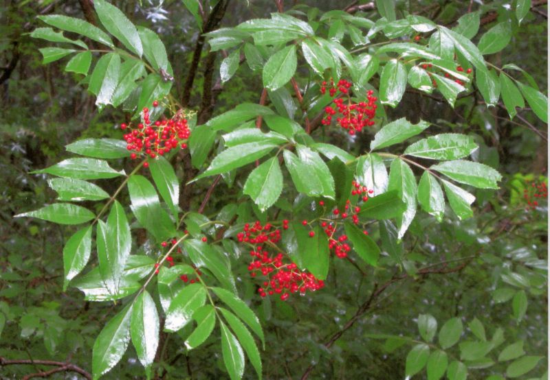 ニワトコ属、落葉、小高木。