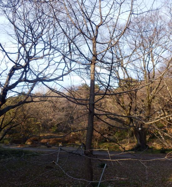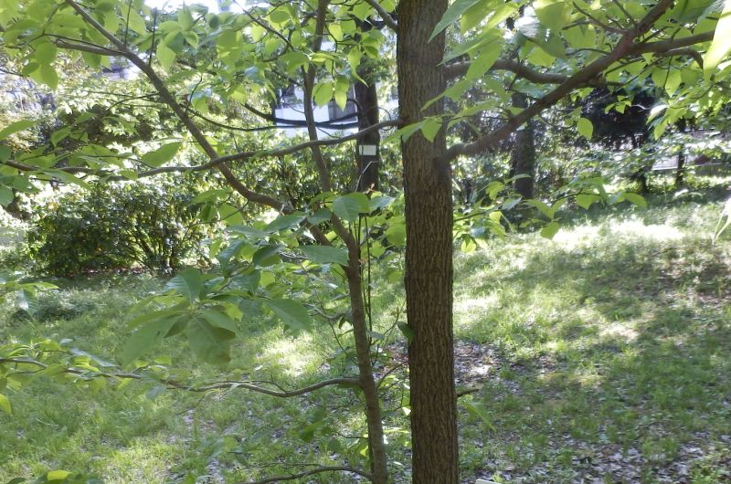 幹は直立し、樹皮には長方形の割れ目がはいる。