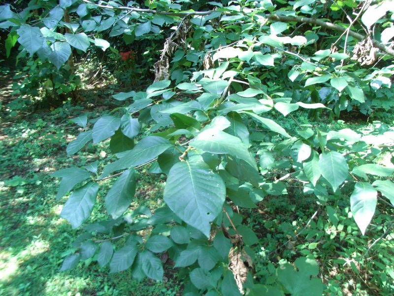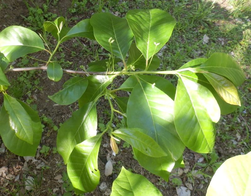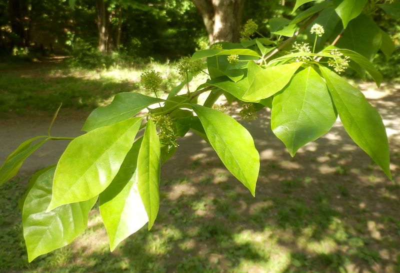 葉は互生し、先のとがった長さ5〜12センチの楕円形で、