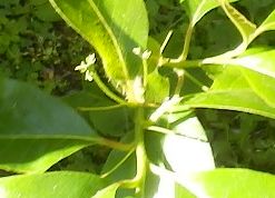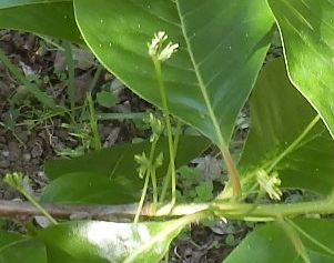 長い花柄が数本出て、小さな雌花がつく。(2017/5/2)