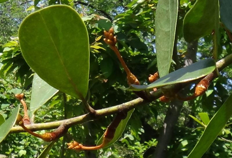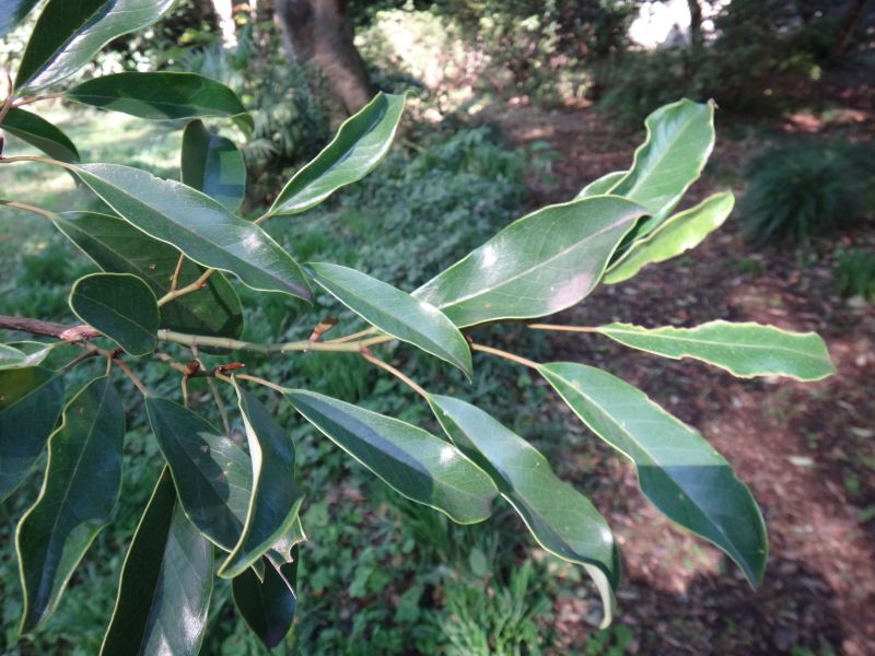 葉は互生し、長さ5〜12センチの長楕円形で、全縁で光沢があり、