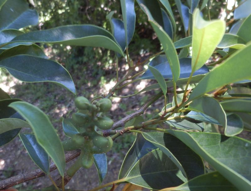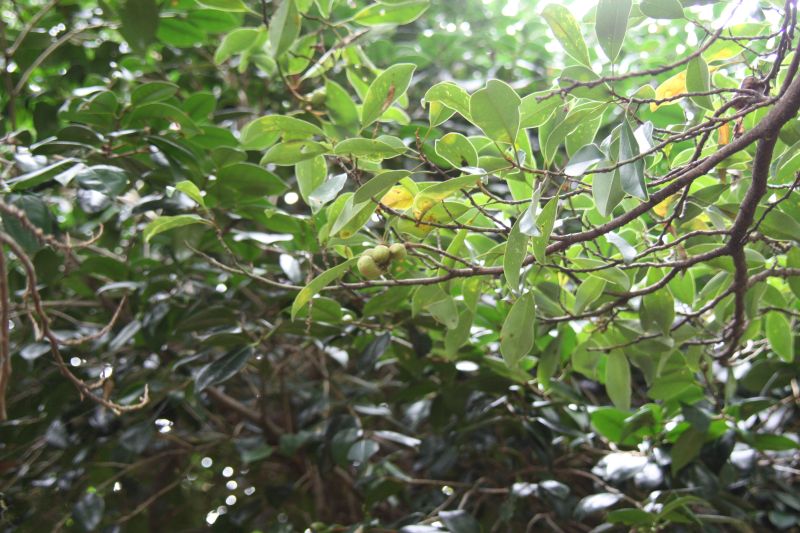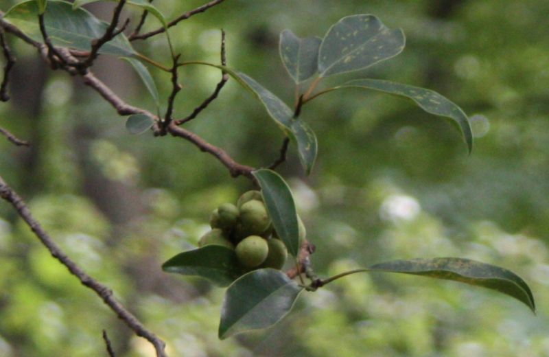 葉は全縁の長楕円形で光沢があり、互生する。(2017/10/26)