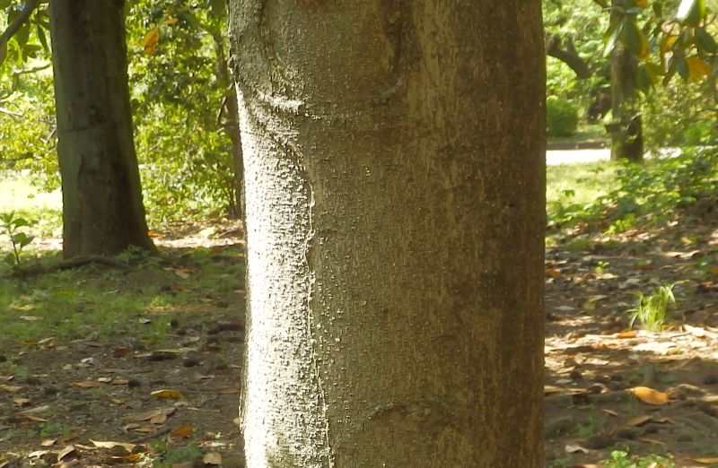 幹は直立し、樹皮は暗褐色で平滑であり、