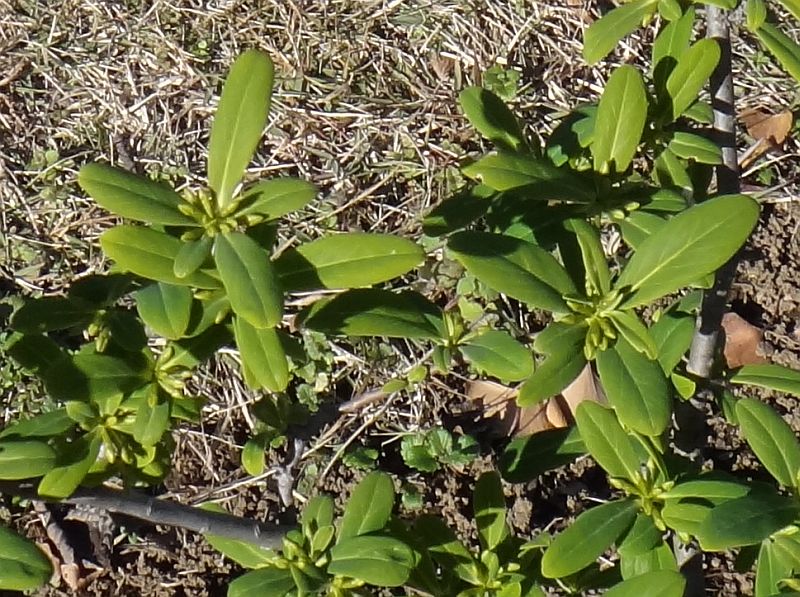 長楕円形で全縁の葉が互生する。(2016/4/15)
