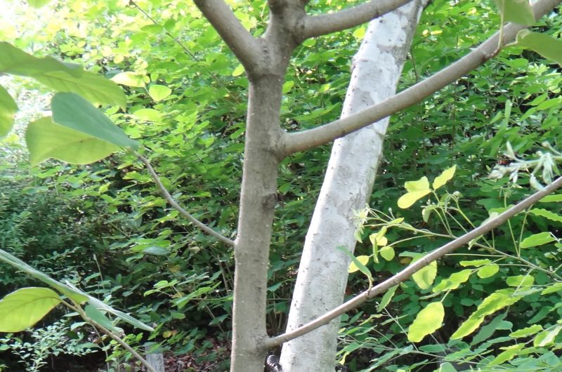 高くのびるのではなく、やや横広がりになり、樹皮は灰白色である。